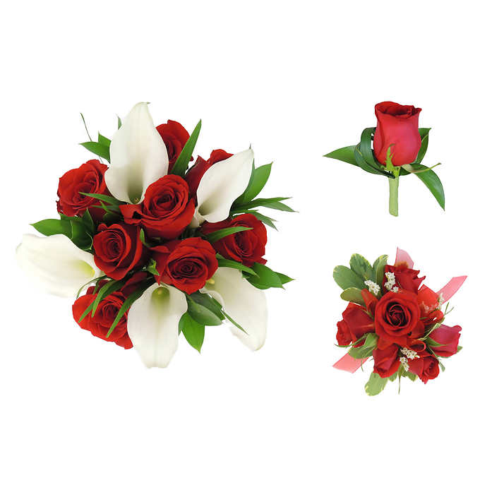 Extra Cortège Nuptial Romantico (Rouge – 1 bouquet demoiselle d’honneur, 1 corsage, 1 boutonnière)