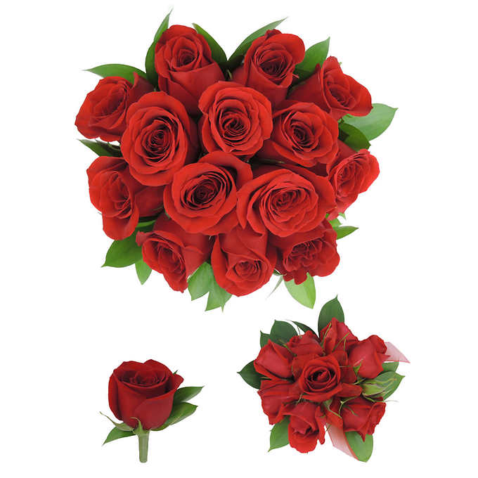 Extra Cortège Nuptial Rose (Rouge – 1 bouquet demoiselle d’honneur, 1 corsage, 1 boutonnière)